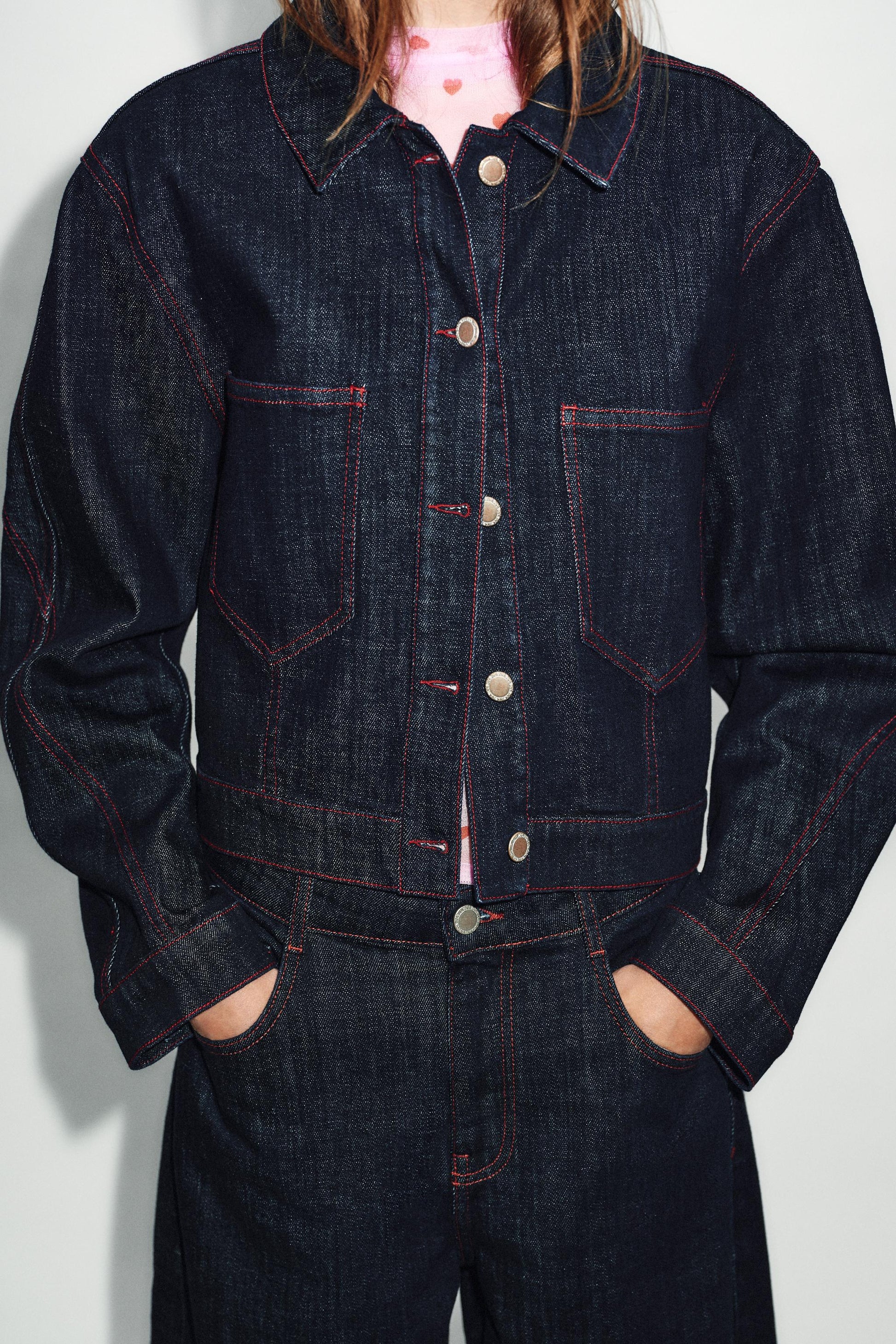 De Masimo – Valentino Denim Set is een unieke denim statement set die stoere streetwear combineert met een speels, romantisch detail. Deze set bestaat uit een kort denim jack en een bijpassende high-waisted jeans, beide uitgevoerd in een diepe donkerblauwe denim met opvallende contrasterende rode stiksels.