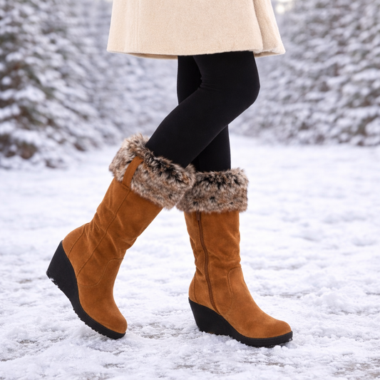 Winterlaarzen voor dames met pluchen bovendeel en comfortabele sleehak - Kavira