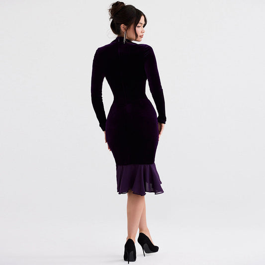 Clara - Zeer laag uitgesneden fluwelen mini jurk met mesh inzetstukken
