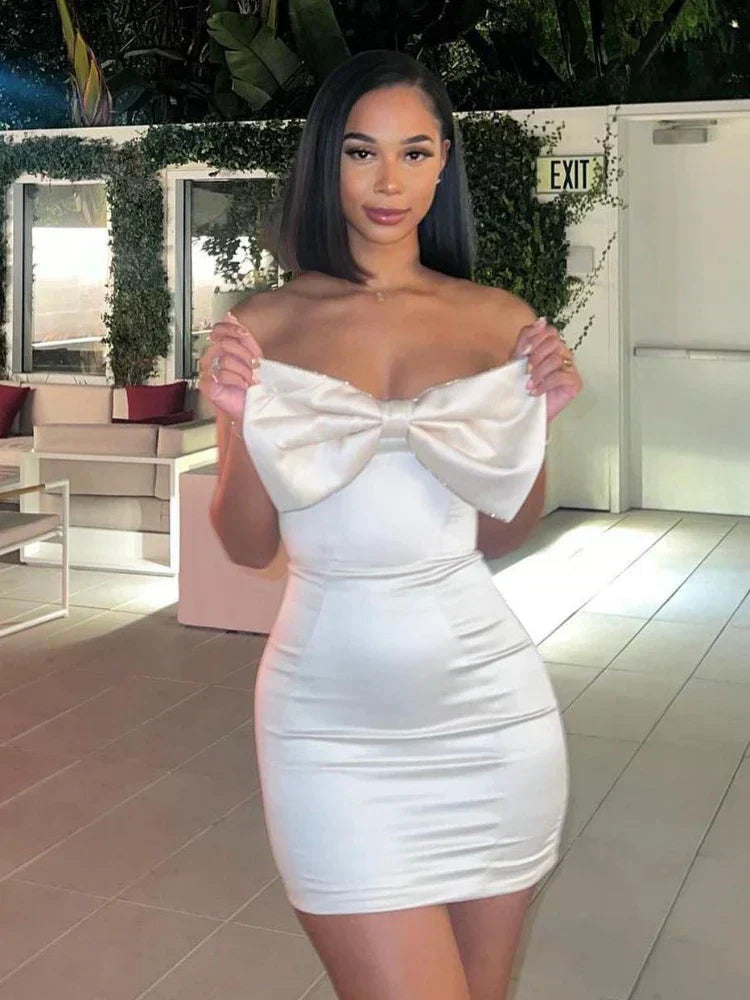Ezra - Strapless satijnen jurk met strik