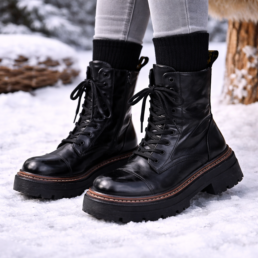 Deze korte dameslaarzen hebben een stevige mid-cut constructie met een compacte structuur voor stabiliteit bij dagelijks gebruik. Het ontwerp combineert een functioneel profiel met een stevige basis die volume en ondersteuning in balans brengt met behoud van een eigentijds, gedefinieerd silhouet. Het sluitsysteem aan de zijkant zorgt voor een makkelijke pasvorm en versterkt het gevoel van een stevige pasvorm bij elke stap.