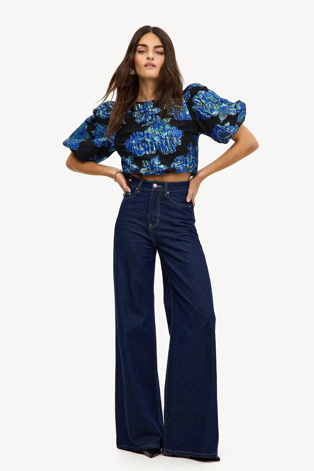 Top met pofmouwen en subtiele halslijn