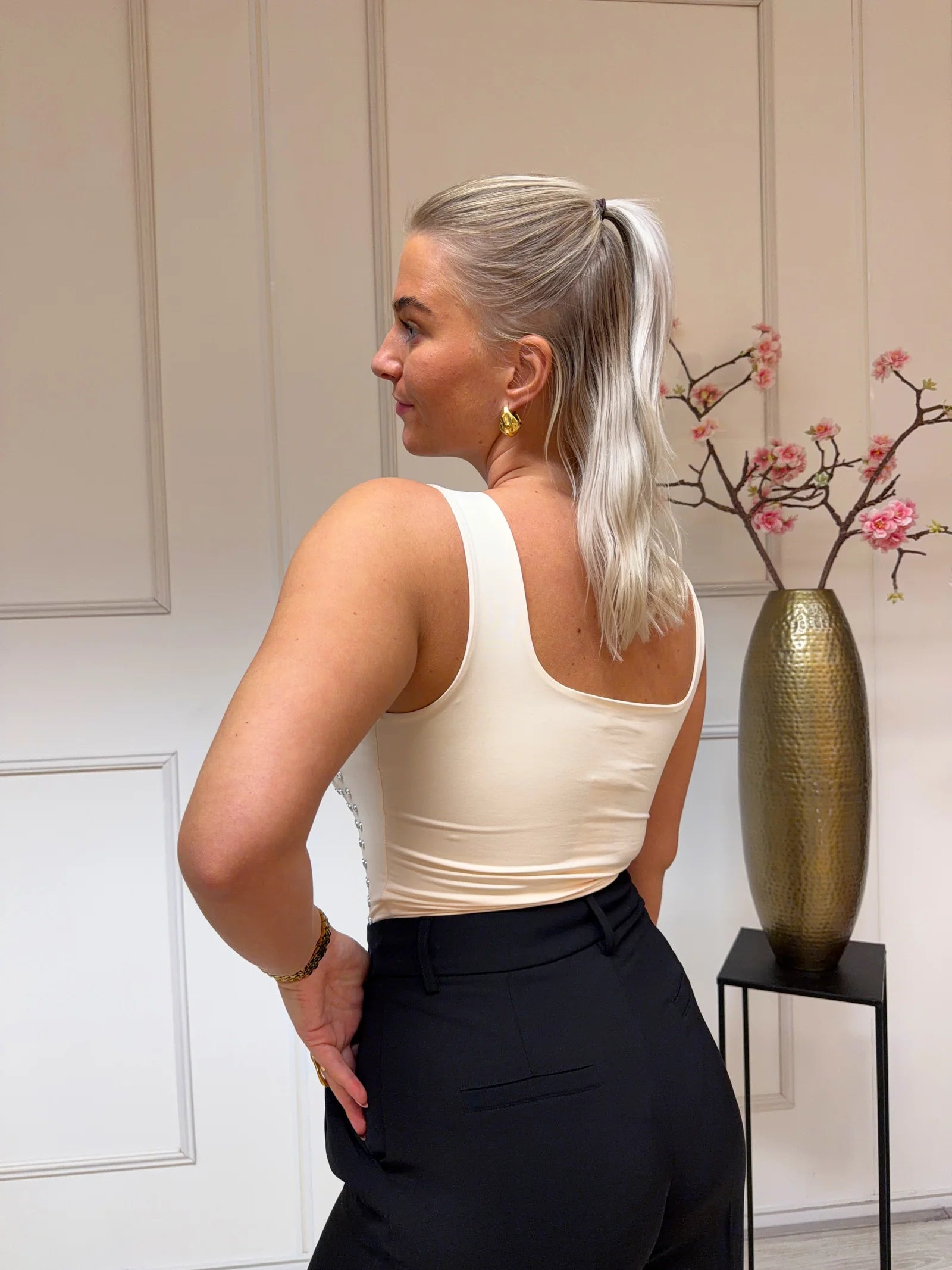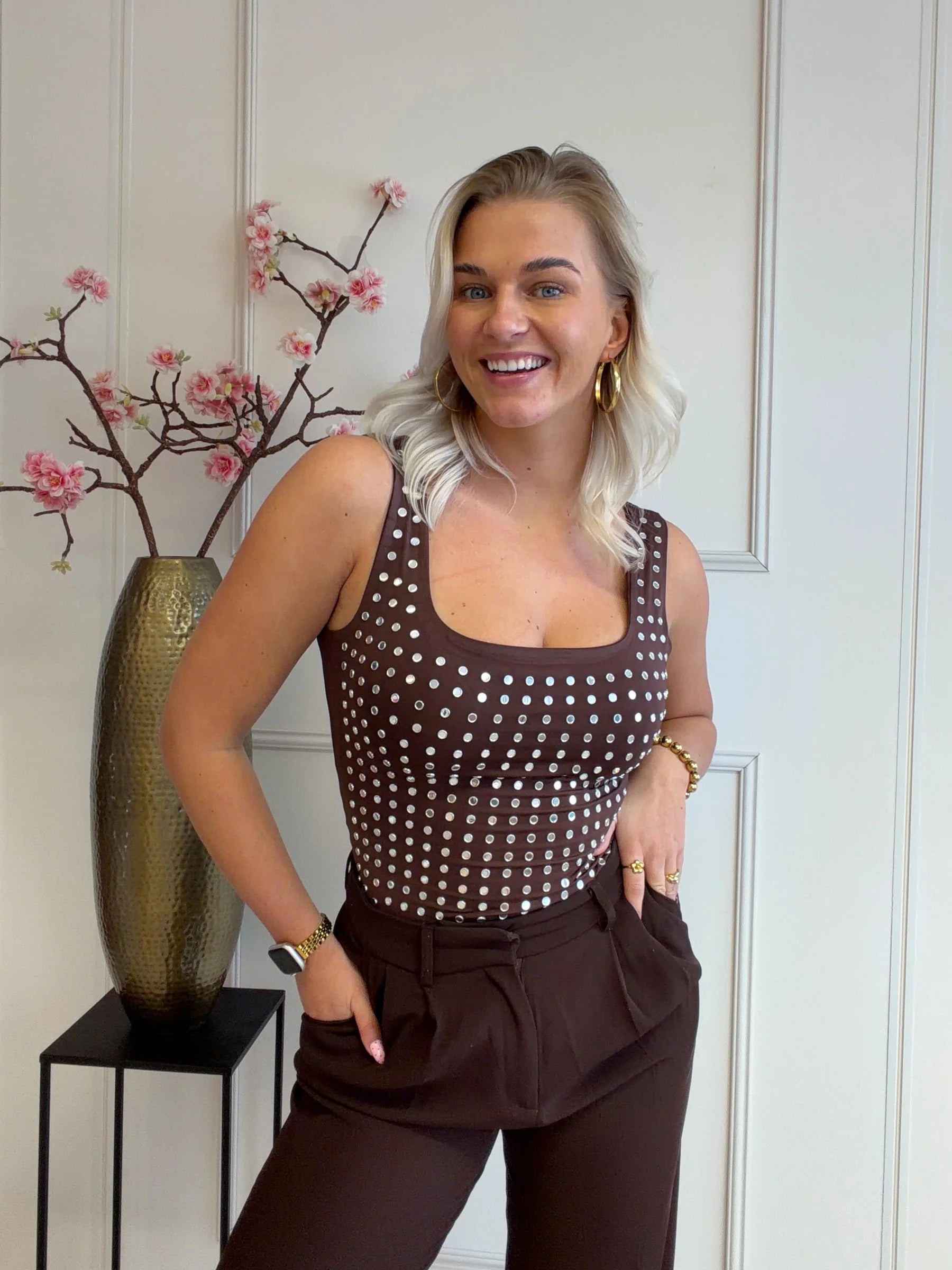 Maak je look helemaal af met deze showstopper: de Studs Body! Deze body is de perfecte mix van edgy en elegant, met een strakke pasvorm en prachtige zilveren studs die je look nét dat beetje extra geven. Of je nu gaat voor een casual outfit of iets meer uitgesproken, deze body is jouw nieuwe go-to item voor elke gelegenheid.