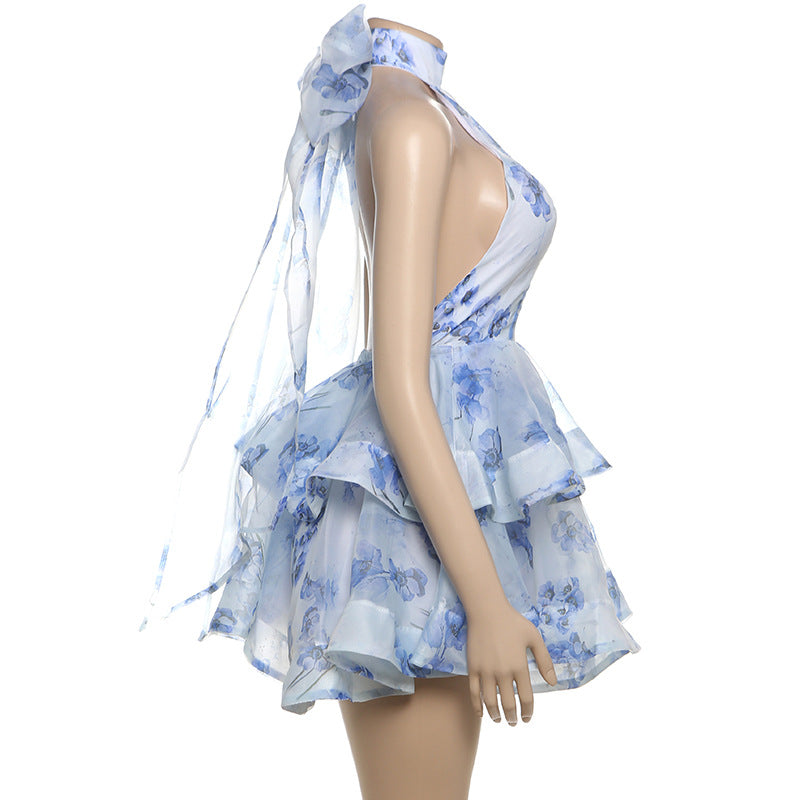 Valeria - Bedrukte korte jurk met open rug en halterneklijn
